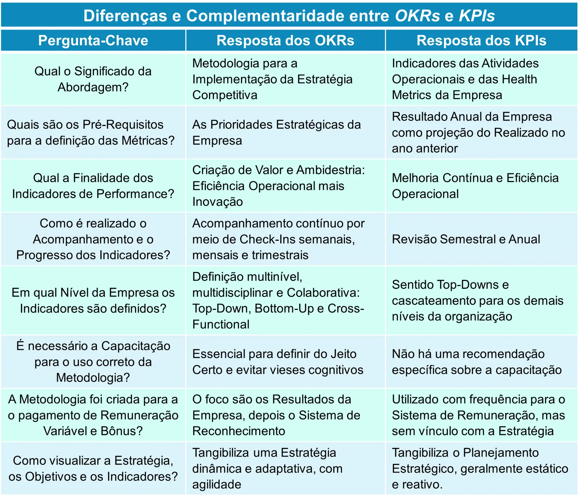 Ao invés de estimular uma disputa entre os OKRs e os KPIs, nossa intenção é propor, que essas duas metodologias de Gestão da Performance de uma empresa, podem ser utilizadas de forma complementar – se forem praticadas do Jeito Certo.