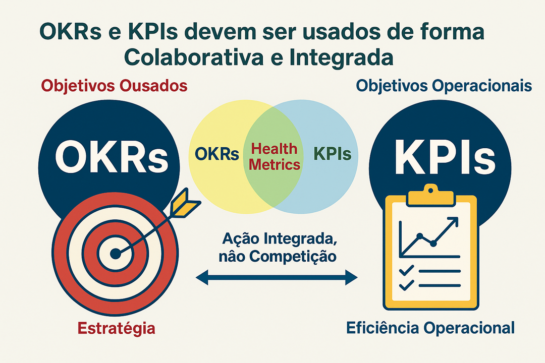 A resposta é sim: os OKRs e os KPIs podem e devem ser utilizados em conjunto, de forma inteligente e complementar, apesar de suas diferenças e impactos diferentes nos resultados das empresas. Por esses motivos precisamos, isso sim, pensar mais como realizar a colaboração, do que valoriza competição entre os OKRs e os KPIs.